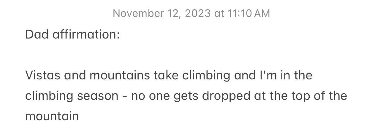 I began to climb yet another wall of rocks when I instantly remembered something that my dad said to me years ago, something I knew I wrote down on my phone because I didn’t want to forget it. And that was this: