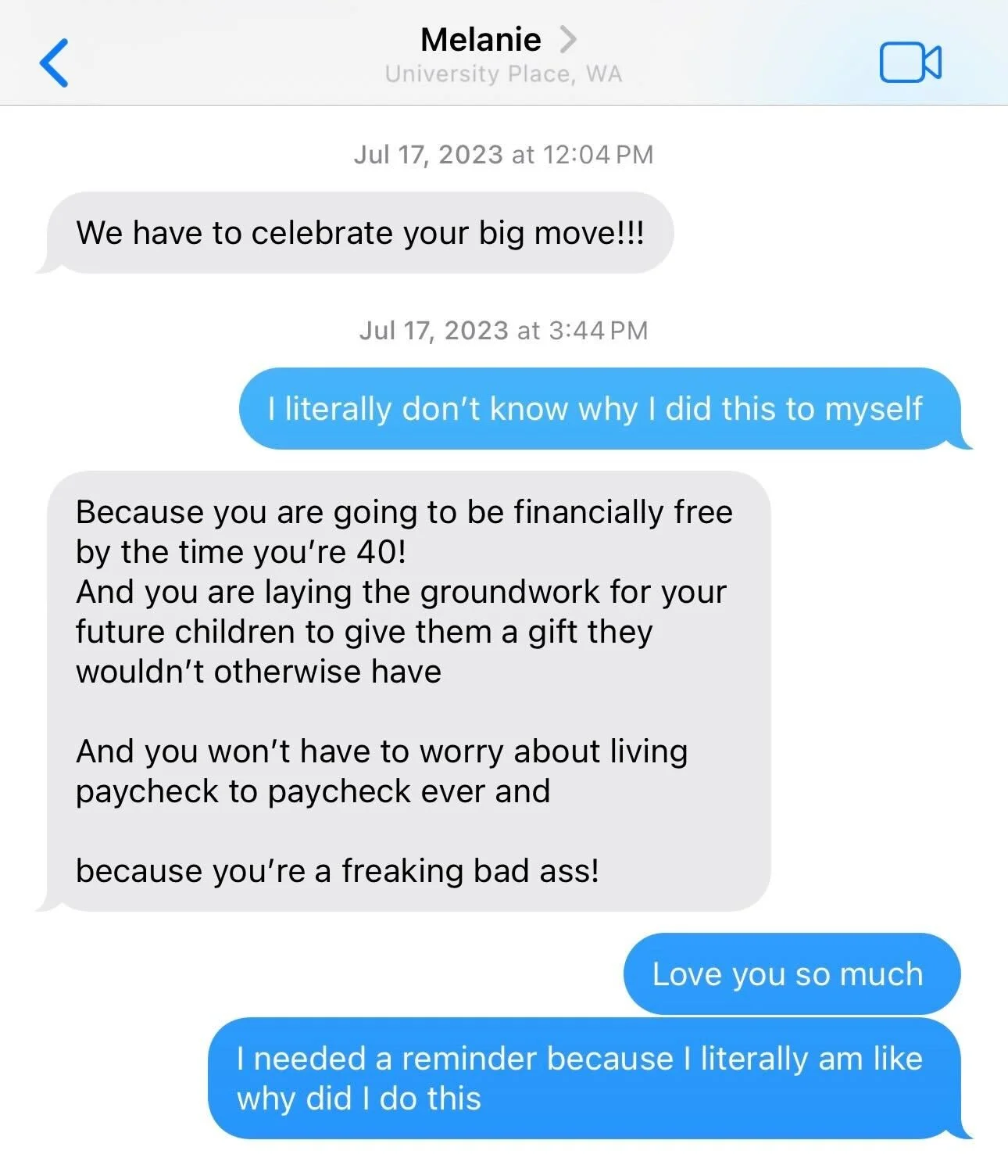 My rational brain knew I was delaying gratification and pushing myself a little closer towards my future goals, but as I was packing up those last supplies in my Volkswagen, I wished for one millisecond that I could just be ok with living an average, easy life where I never had to move, never had to spend thousands on prepping a rental, and never had to worry about if my renters would ruin a home I loved so much and worked hard for. But, I knew I could never be ok with that. My calling wasn’t to live a life of average, but to live a life of heavy responsibility and to take ownership over what I really wanted even if it meant doing it when everything in me didn’t want to.